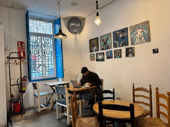 The interior exudes a cozy charm, adorned with artworks from local and international artists, reflecting the café’s commitment to the arts. This ever-changing gallery not only enhances the ambiance but also supports the creative community. The Ruzafa location features a tranquil back patio, perfect for those seeking a peaceful retreat within the bustling city.​