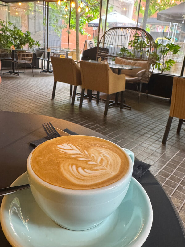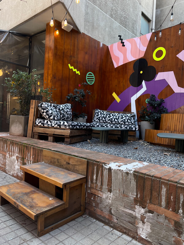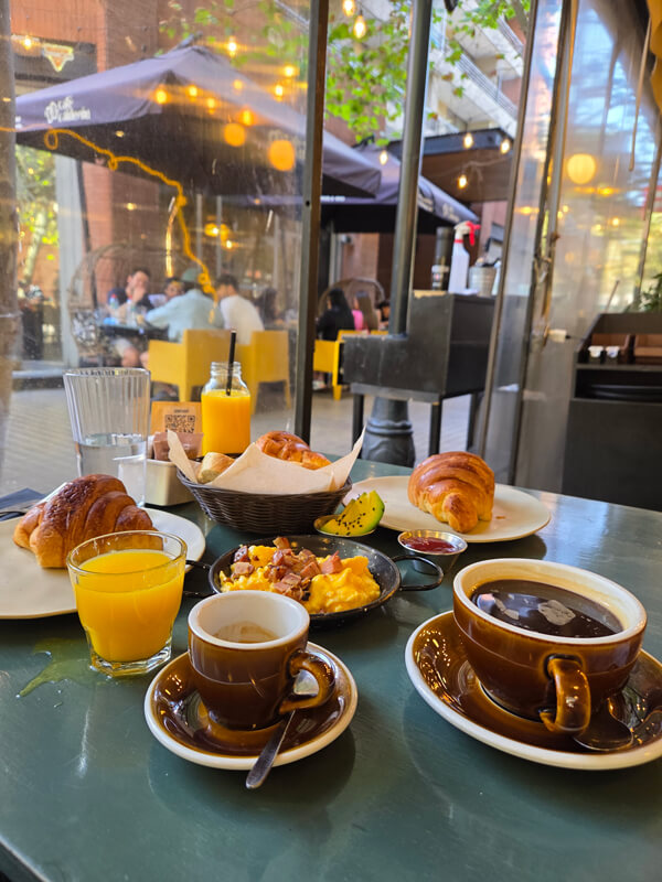 Café Calderón attracts a diverse crowd—students working on laptops, business professionals meeting over cappuccinos, and tourists pausing between visits to the cultural spots nearby. It’s a place to slow down and enjoy Santiago’s growing café culture while being in the middle of one of the city’s most artistic districts.