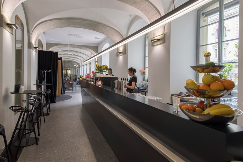 Nestled in the heart of Bern’s historic old town, Café Lounge Lesbar offers a tranquil escape within the University Library building. Its modern yet cozy interior features high vaulted ceilings and soft lounge music, creating an inviting atmosphere for both relaxation and productivity.