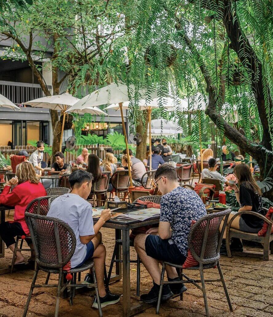 A serene garden café offering a blend of Thai and Western dishes, nestled in a lush green oasis in the heart of Chiang Mai's Old City.