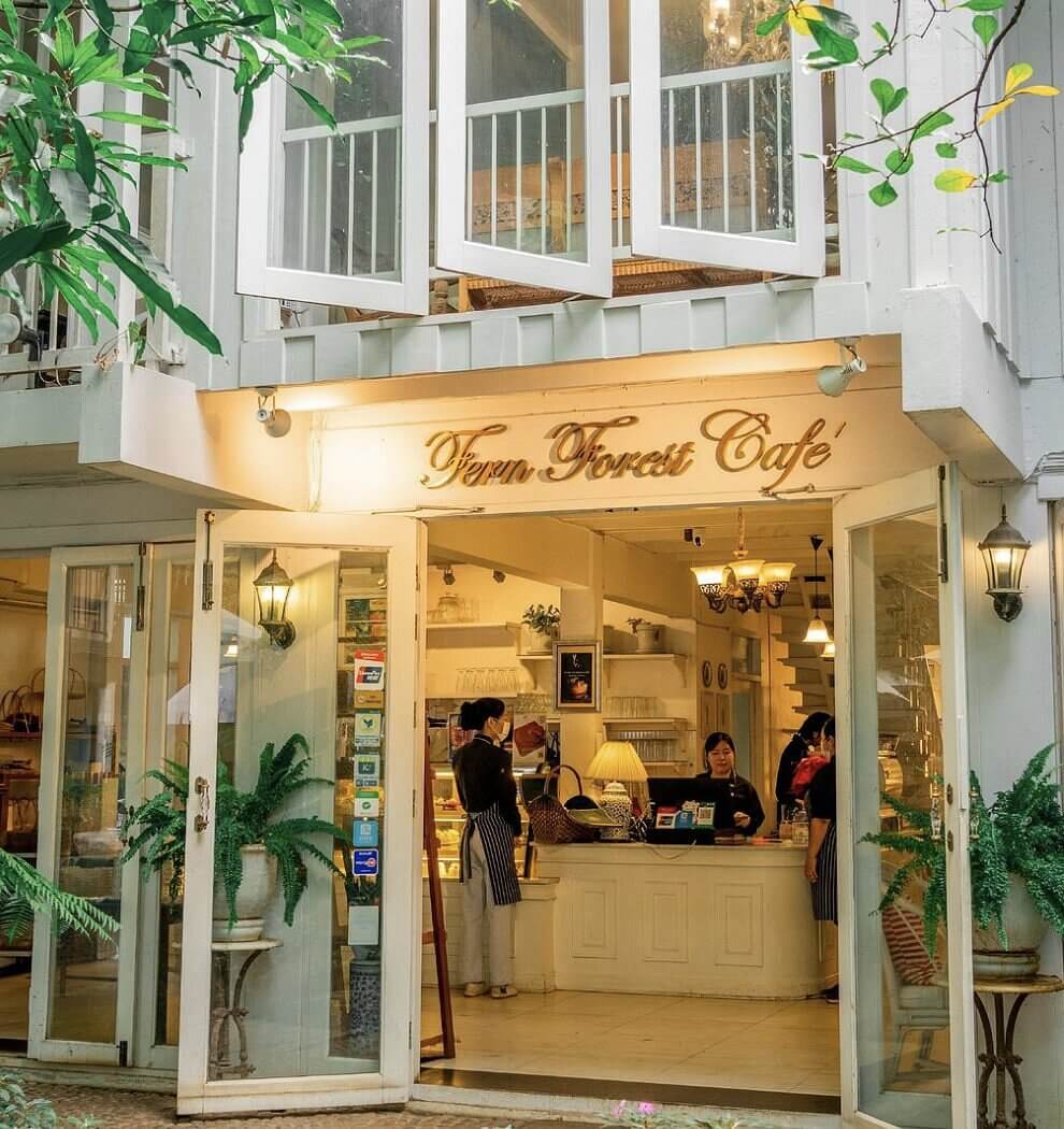 Fern Forest Café is a charming, family-owned establishment located on Singharat Road in Chiang Mai’s Old City. Housed in a beautifully renovated two-story building, the café exudes a rustic yet elegant ambiance, featuring white and blue interiors complemented by golden chandeliers. The surrounding garden is a tranquil haven, adorned with ferns and shaded by mature trees, creating a peaceful retreat from the city’s bustle.​