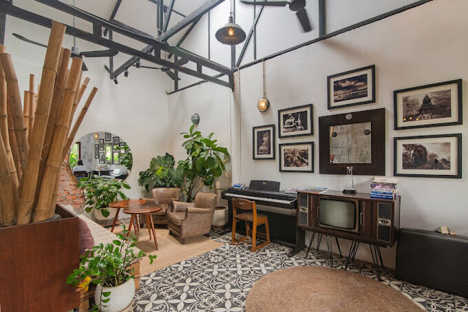 Seating: Footprint Cafes provides both indoor and outdoor seating options, with the indoor area featuring shelves lined with books, creating a library-like atmosphere. The outdoor seating area offers a pleasant view of the surroundings.​