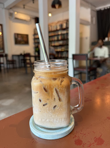 The café provides a cozy atmosphere with ample seating, making it suitable for work, relaxation, or study. Additionally, it offers a selection of books for patrons to enjoy.