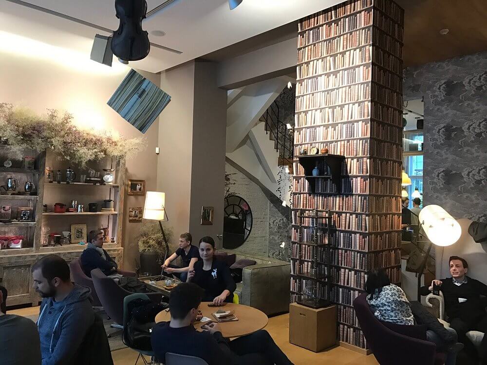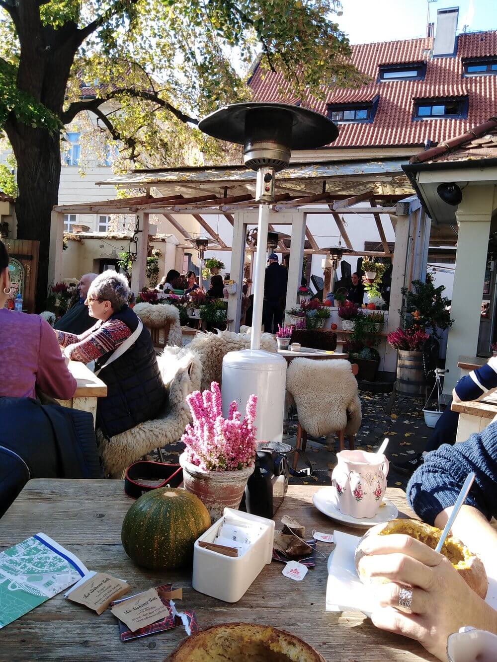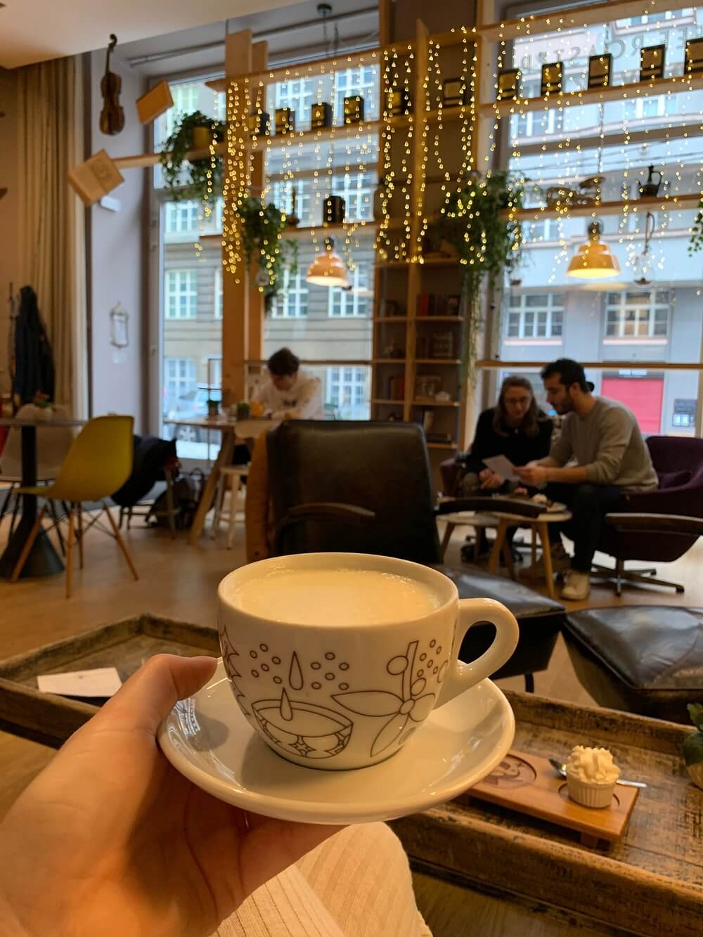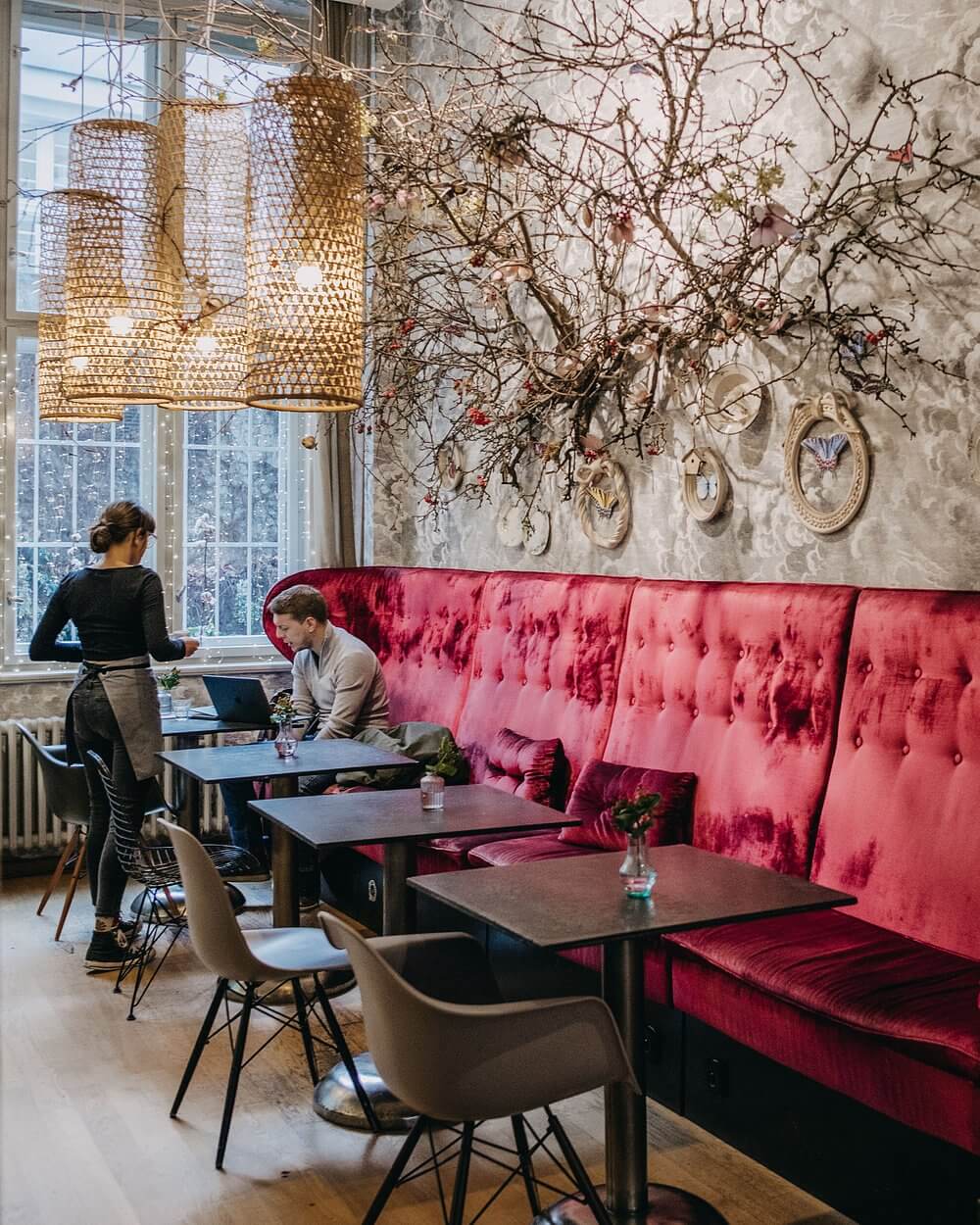 Located in Prague’s Vinohrady district, La Bohème Café offers a spacious and stylish environment for coffee enthusiasts. The interior features design furniture and wallpapered walls, creating an inviting atmosphere.