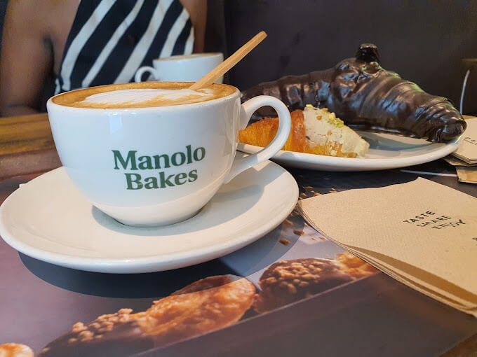 Manolo Bakes is best known for its Manolitos—mini croissants available in a variety of flavors, including chocolate, pistachio, and dulce de leche. Another specialty is the Palmitas, delicate puff pastries that pair excellently with their coffee offerings. Speaking of coffee, the café takes pride in its exclusive blend of Arabica beans sourced from seven of the finest coffee-growing regions in Africa and South America, ensuring a rich and flavorful cup every time.