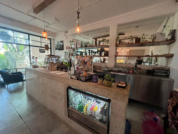 They serve a variety of specialty coffees, including espresso-based drinks, pour-overs, and cold brews, all crafted with beans roasted by Café Estelar, one of Mexico’s most renowned coffee roasters. The interior features a clean design with natural light, creating a relaxing environment for customers to enjoy their beverages.