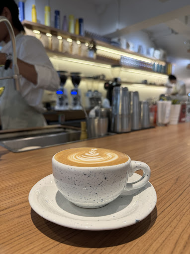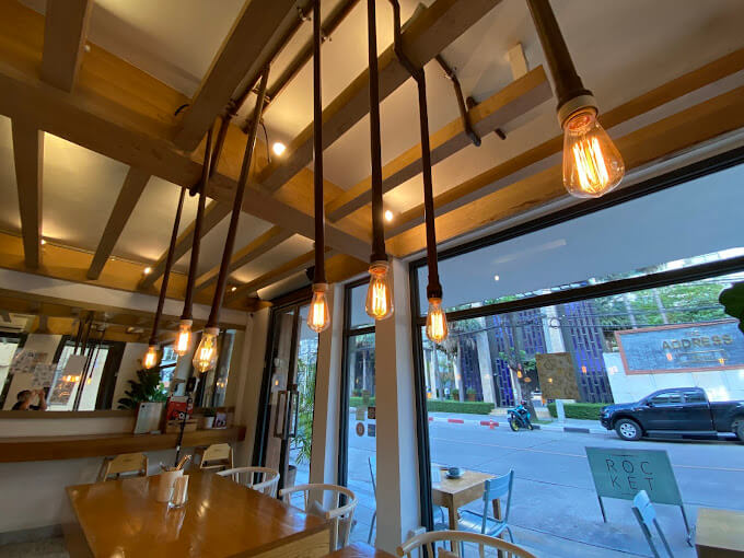 Rocket Coffeebar, located on Sathorn Soi 12 in Bangkok, is a stylish café that brings a touch of Scandinavian design to the city’s vibrant coffee scene. With its white marble counters, light wood accents, and expansive windows, the café offers a bright and inviting atmosphere, making it an ideal spot for both relaxation and productivity.